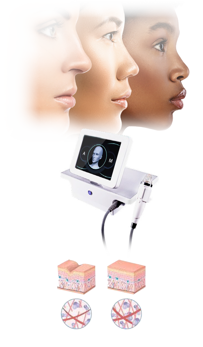Das Gerät arbeitet, indem Mikronadeln kleinste Löcher in die Haut stechen, die den natürlichen Reparatur- und Erneuerungsprozess der Haut anregen. Die abgegebene Radiofrequenzenergie erwärmt die Haut und führt zu einer Verkürzung der Kollagenfasern, was eine sofxortige Straffung bewirkt. Gleichzeitig wird die Kollagensynthese angeregt, was zu einer langfristigen Regeneration und Reparatur der Haut führt.